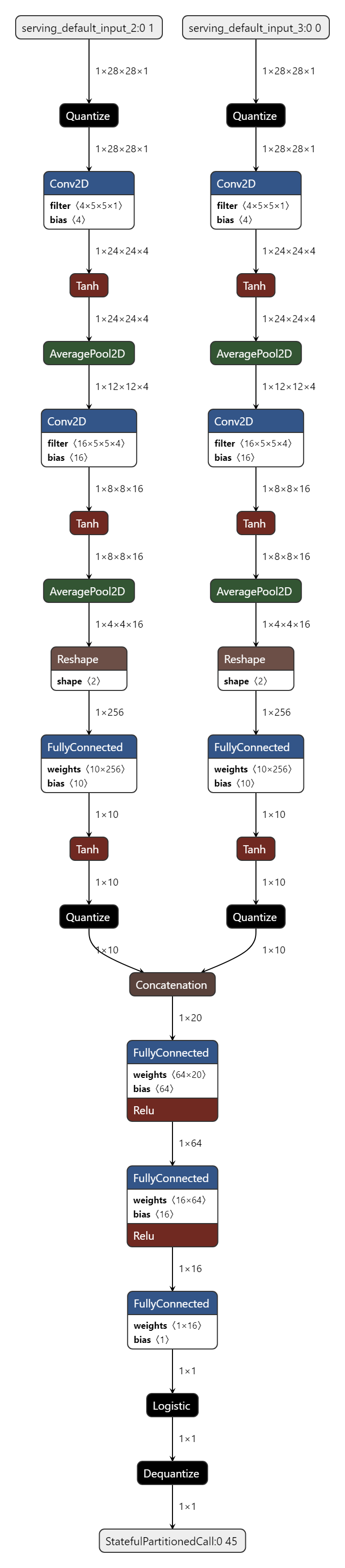 | 0 | quantize | 28x28x1 (float32) | 28x28x1 (int8) | BuiltinOptionsType=0 |